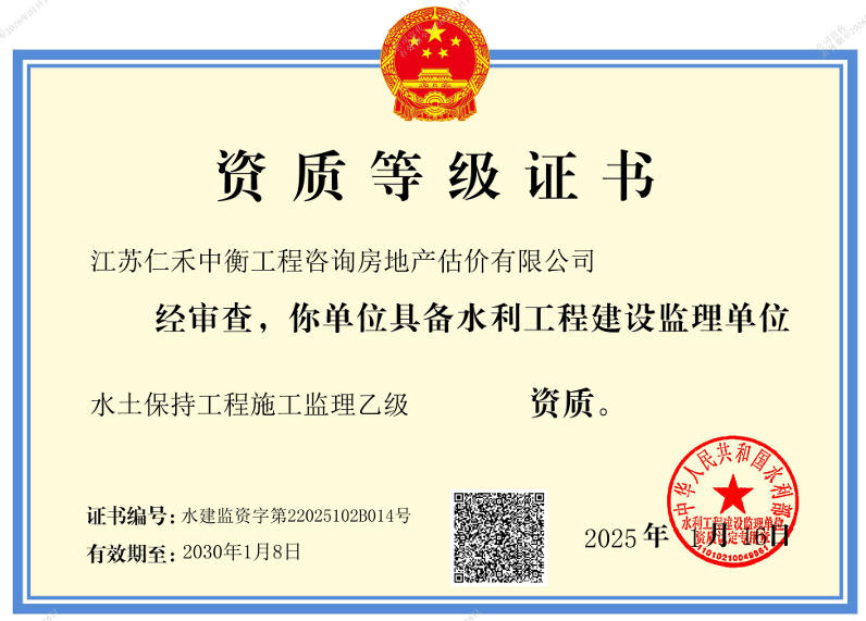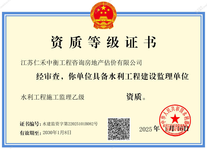 - 水利工程施工監(jiān)理乙級(jí)證書(shū)